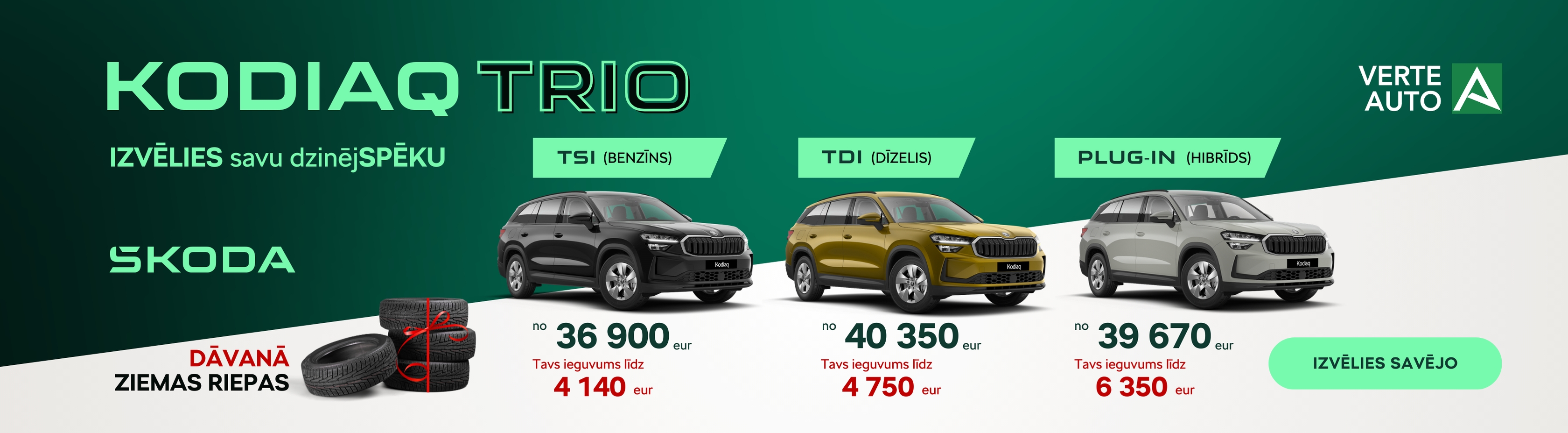 Kodiaq Trio piedāvājums - tikai pie Verte Auto!
