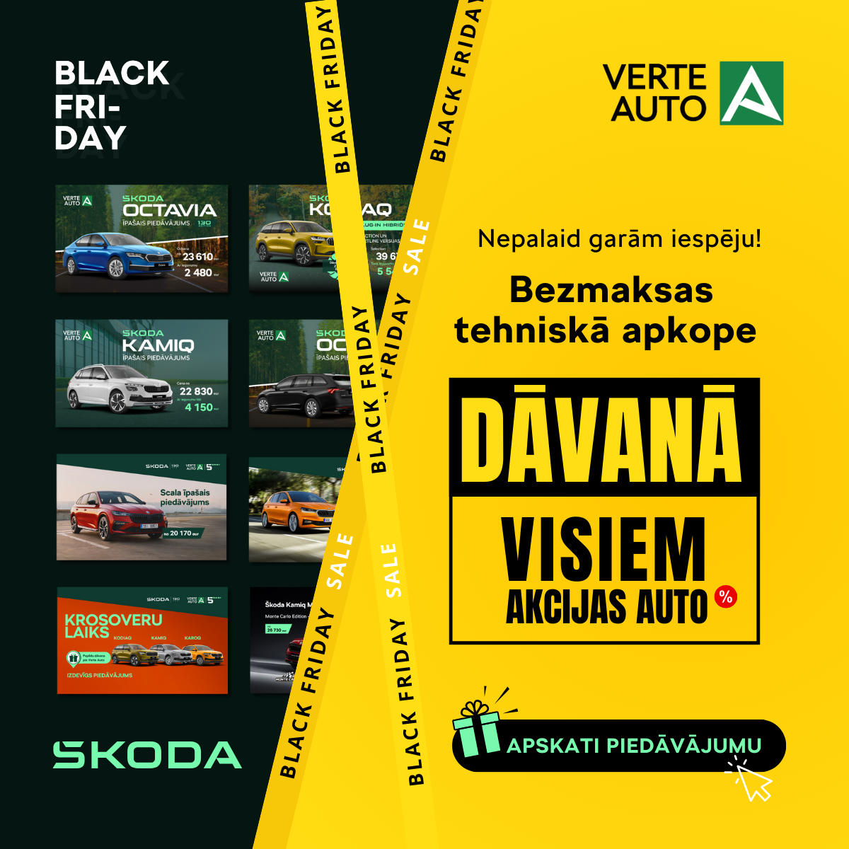 Melnās piektdienas piedāvājums pie Verte Auto – pērkot jaunu automašīnu, dāvanā bezmaksas tehniskā apkope, bet iegādājoties kādu no mazlietotajām automašīnām – īpašs cenas piedāvājums un 0% pirmā līzinga iemaksa!